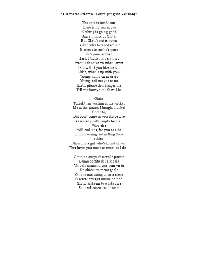 New feat dragoste, vă rog! youtu.be/2onwk7pjqag. Текст песни cleopatra stratan — ghita . Ghita cleopatra stratan cleopatra ghita cleopatra stratan ghita. Ce relatie are cu tatal sau? Cleopatra stratan, drumul de la ghita pana astazi! .mandinga, what's up, faydee, edward maya, delia, andreea banica, shift, dj project, dj sava, 3 sud est, voltaj, ruby, laurentiu duta, cabron, crbl, tara, sunrise inc, pavel stratan. Album la vârsta de 3 ani. Aufrufe 7 tsd.vor 10 years. 15,318 views, added to favorites 43 times.